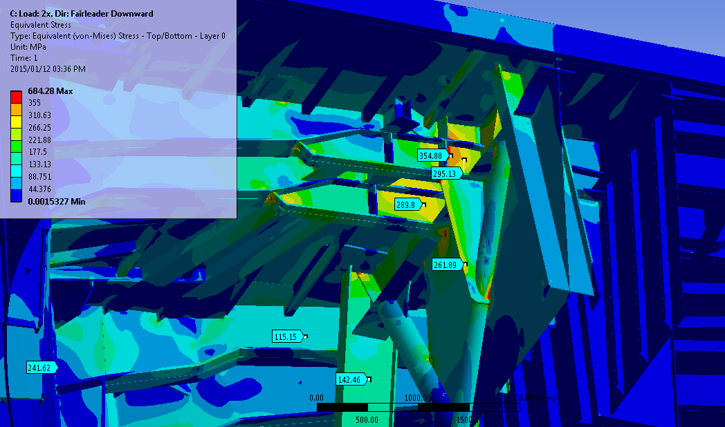 In 2014 the process was repeated for the Aft Port Mooring System. The winch support structure was analysed as was the entire aft boat deck, as per some images included here.