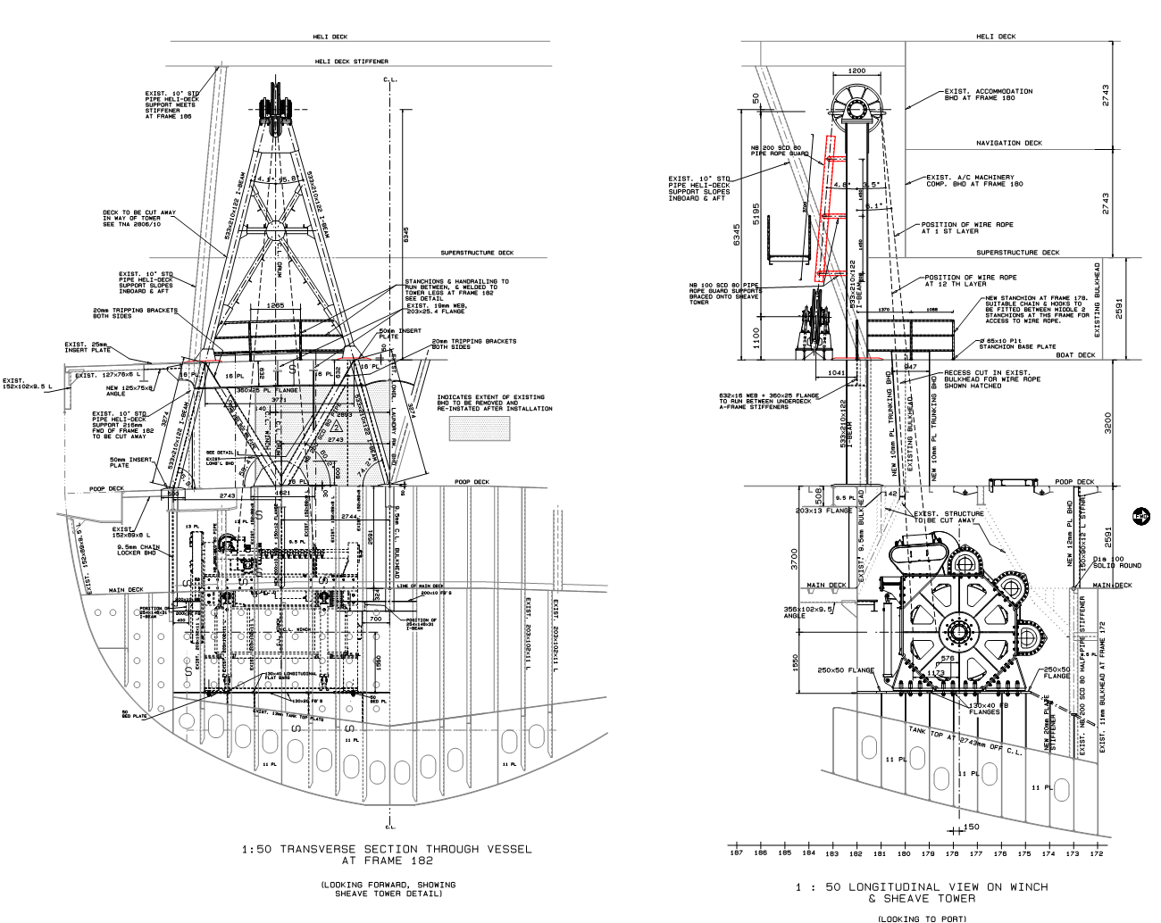 Section and Elevation on Winch and Tower Arrangement (click to enlarge).